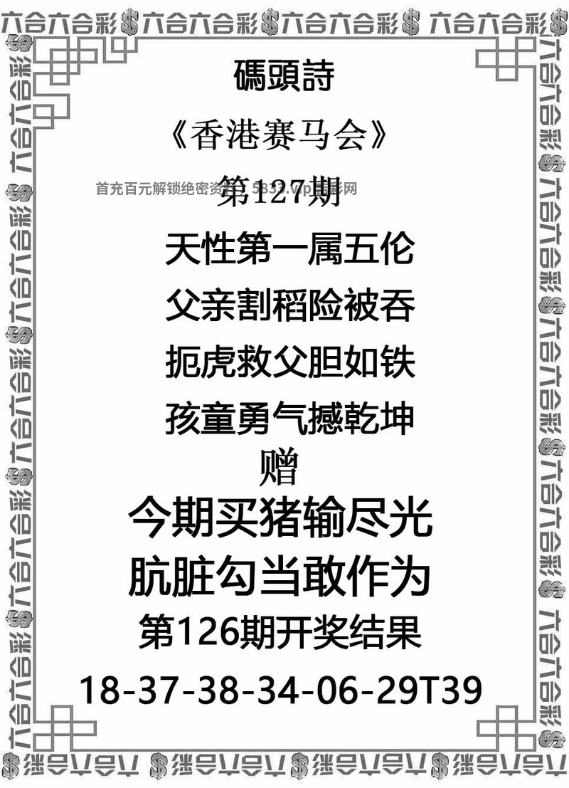 127期港彩码头诗开發00 天性第一属五伦,父亲割稻险被吞,扼虎救父胆如铁,孩童勇气撼乾坤。 综合特肖:马龙鼠鸡羊猪 综合主肖:马龙鼠鸡 综合一肖:马